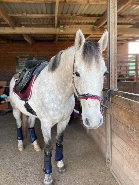 Bacardi lebt seit Oktober 2019 bei uns in Schleswig-Holstein. Er hat sich schnell und völlig problemlos eingelebt, ging ab dem zweiten Tag mit auf die Weide. Er kannte weder Halle noch Reitplatz – und war total entspannt, als er das erste Mal in seinem Leben eine Reithalle betrat. Er ist ein Schatz in jeder Beziehung, liebt es, geputzt zu werden, ist dem Menschen zugewandt und stets freundlich.